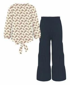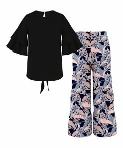 Buy 🧨 Trend Blossoms Dusty Blue & Light Pink Floral Bow-Belt Sleeveless Palazzo Jumpsuit – 👧 Girls 😍