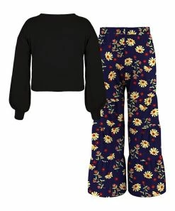 Outlet 🔥 Trend Blossoms Brown Ruffle Sleeveless Top & Dusty Blue Floral Bow Maxi 👗 Skirt – 👧 Girls ⭐