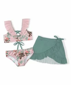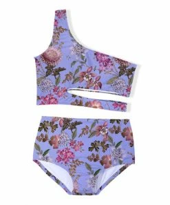 Promo 💯 Trend Blossoms Periwinkle & Pink Floral Asymmetrical Cut-Out High-Waist 👙 Bikini – 👧 Girls 👏