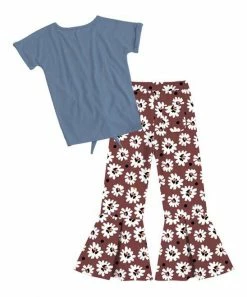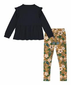 Promo 🥰 Trend Blossoms Dark Navy Ruffle-Accent Long-Sleeve Top & Mustard Floral Leggings – 👧 Girls 😉
