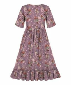 Best Pirce 🥰 Trend Blossoms Dusty Orchid Floral & Polka Dot Ruffle-Accent A-Line 👗 Dress – 👧 Girls ⭐