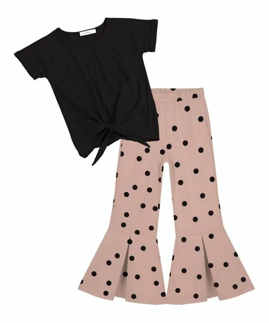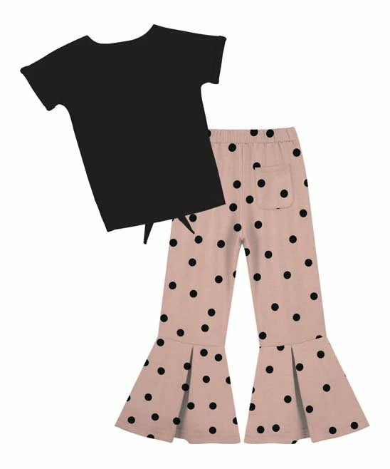 Bolster your little one’s casual wardrobe when you add this outfit set that features a knot-front tee and coordinating flare pants.