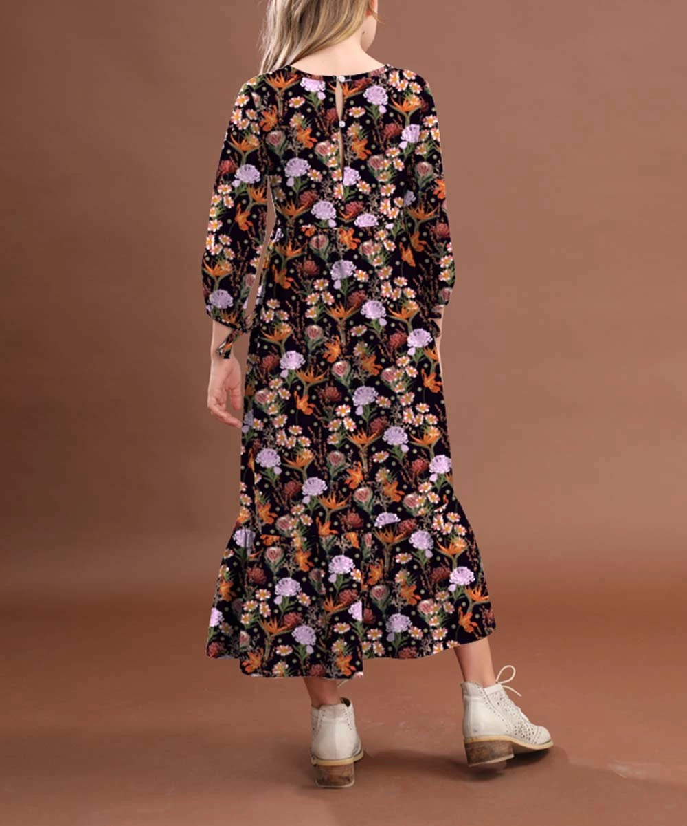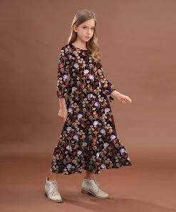 Budget ✔️ Trend Blossoms Black & Orange Floral Ruffle-Hem Maxi 👗 Dress – 👧 Girls 🛒