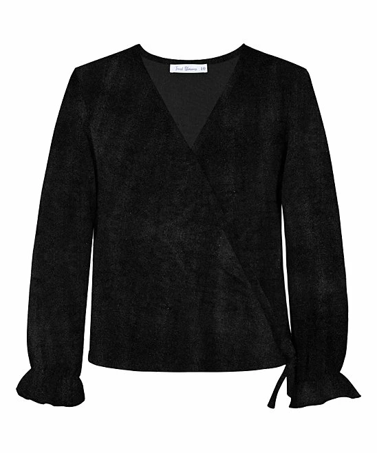 Add stylish flair to your ensemble using this surplice top featuring a soft, velvet feel.