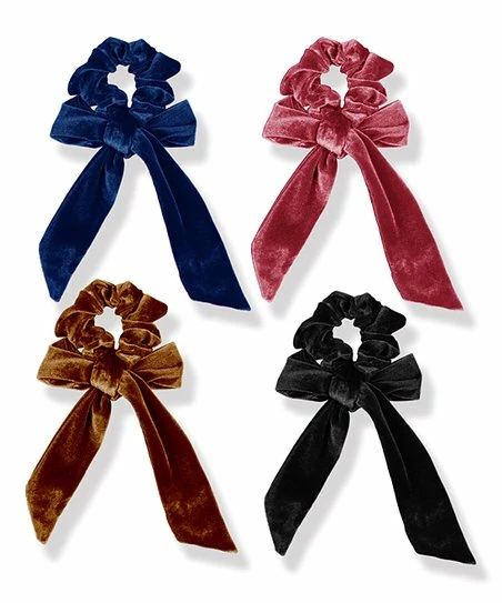 - Includes blue, pink, brown and black scrunchies (four pieces total)
