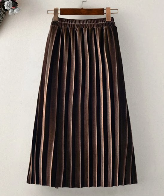 Elevate their look with this pleated maxi skirt crafted with soft velvet fabric.