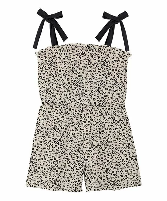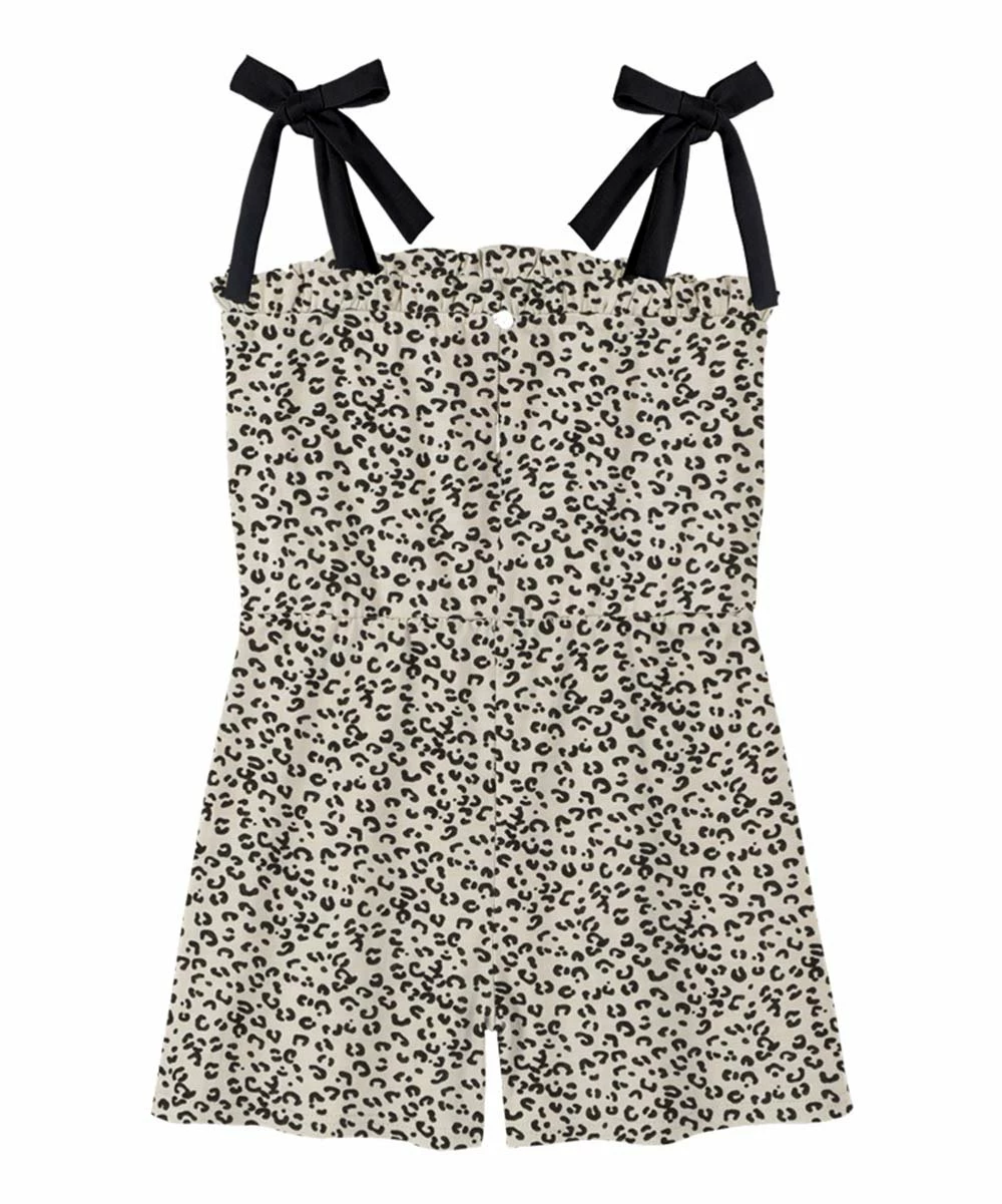 Sweeten their warm weather wardrobe with this romper’s leopard print, ruffle trim and bow straps.