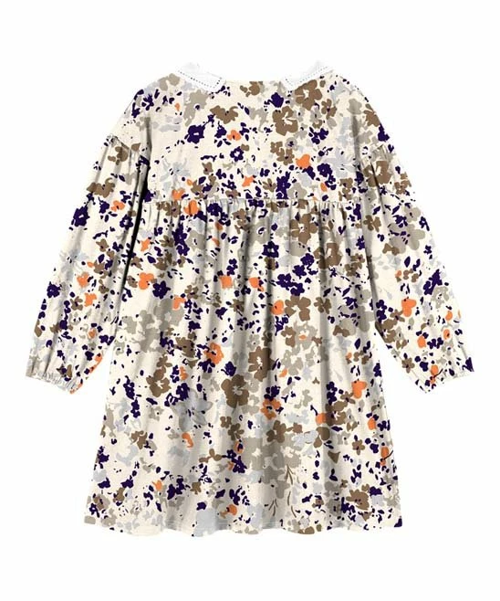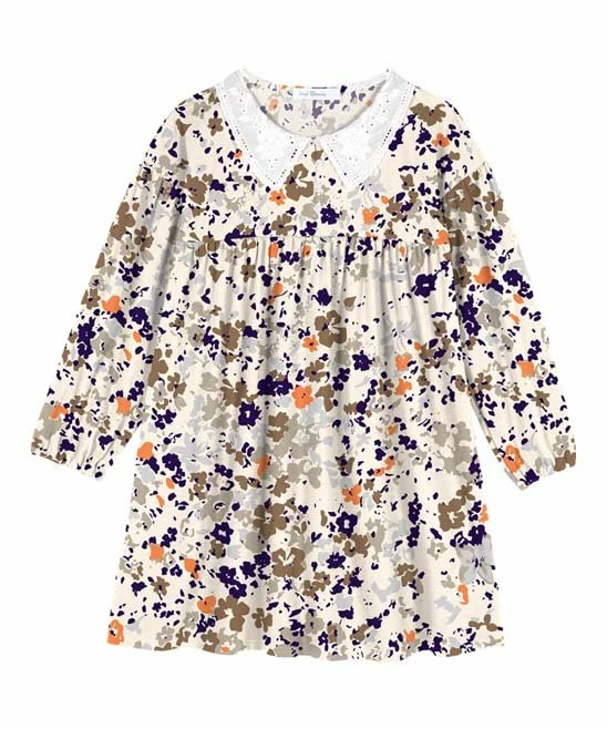Discount ❤️ Trend Blossoms Cream & Dark Blue Watercolor Floral Lace-Collar Babydoll 👗 Dress – 👧 Girls ✔️