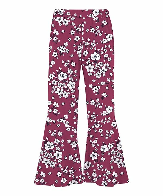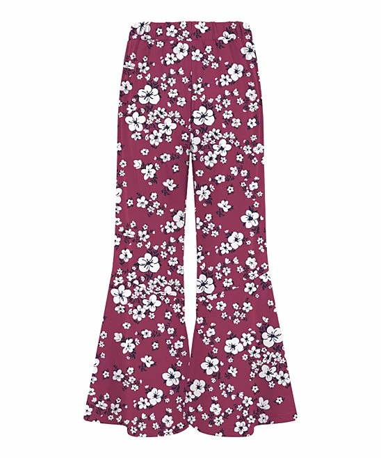 Hot Sale ๐Ÿ‘ Trend Blossoms Dark Fuchsia & White Floral Flare Pants – ๐Ÿ‘ง Girls ๐Ÿ˜€