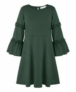 Add sophisticated touch to your little oneโs wardrobe with this mid-length dress featuring poet sleeves.