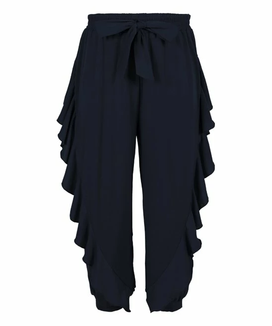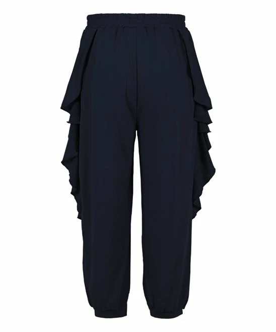 Boost their basics wardrobe with these joggers that display a bow-front belt and ruffle accent along the legs.