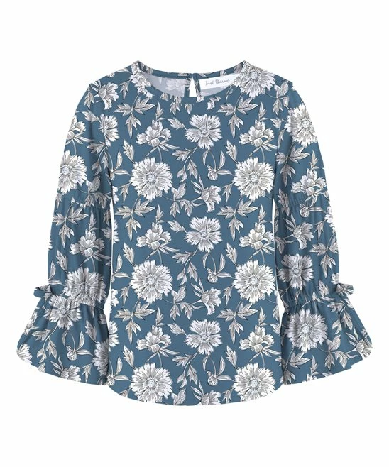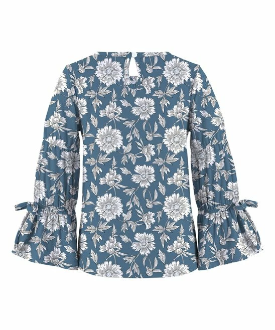 This soft stretch-enhanced crewneck top features tie-detail poet-sleeves, keyhole back and a relaxed fit.