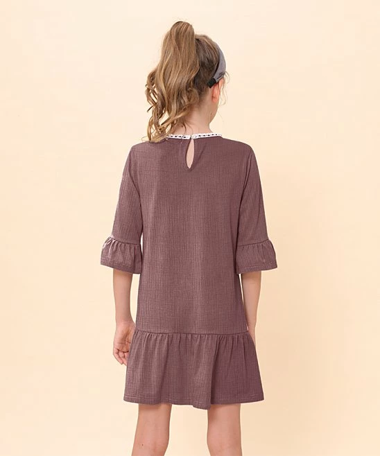 Top 10 🎉 Trend Blossoms Dusty Maroon Crinkle Bell-Sleeve Ruffle-Hem Shift 👗 Dress – 👧 Girls 🔔