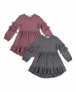They can mix and match outfits with ease thanks to these hi-low tunics with ruffled tiers and puff sleeves.