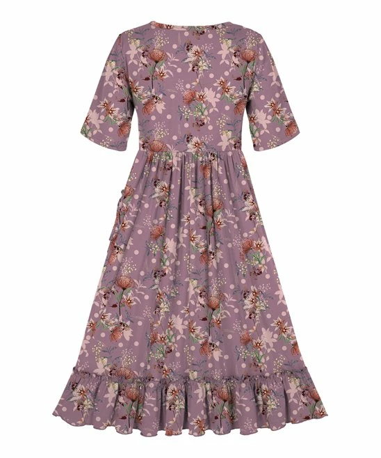They’ll be ready for any occasion with this floral and polka dot dress complete with ruffle detailing.