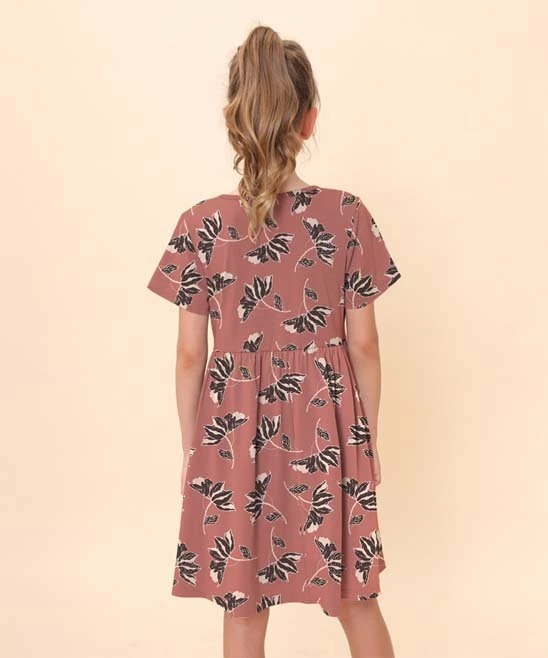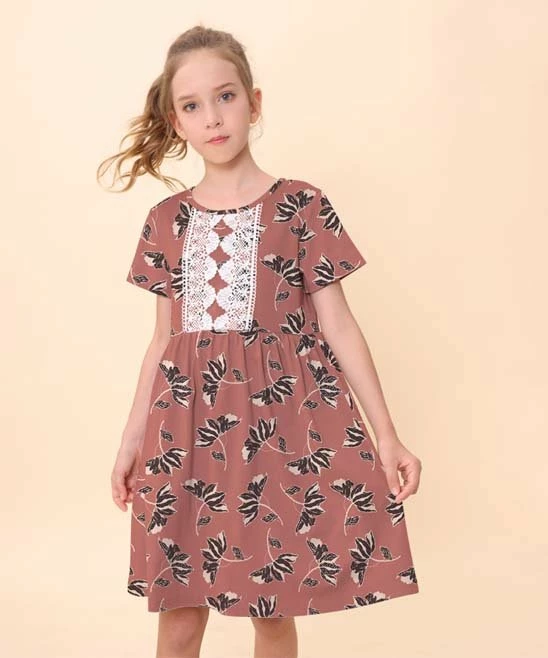 A lace overlay on the chest and small floral print lend this short-sleeve dress a vintage feel.