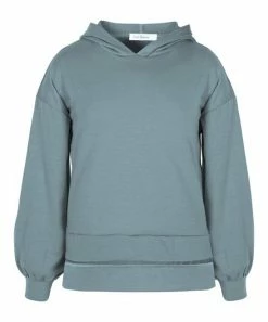 This stretch-infused hoodie sports a drop-shoulder silhouette with puffed sleeves.