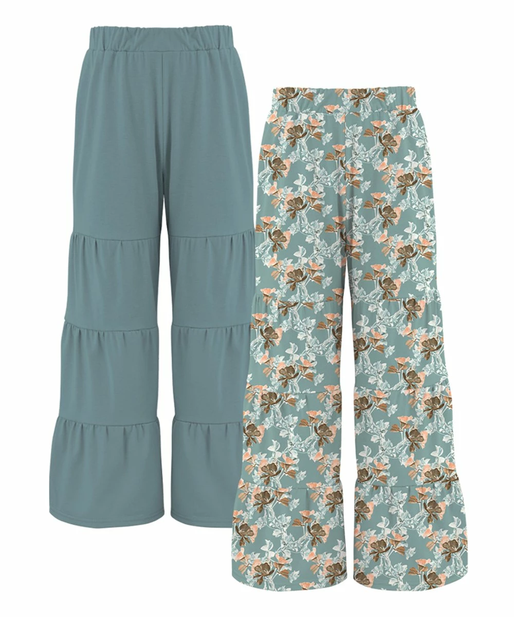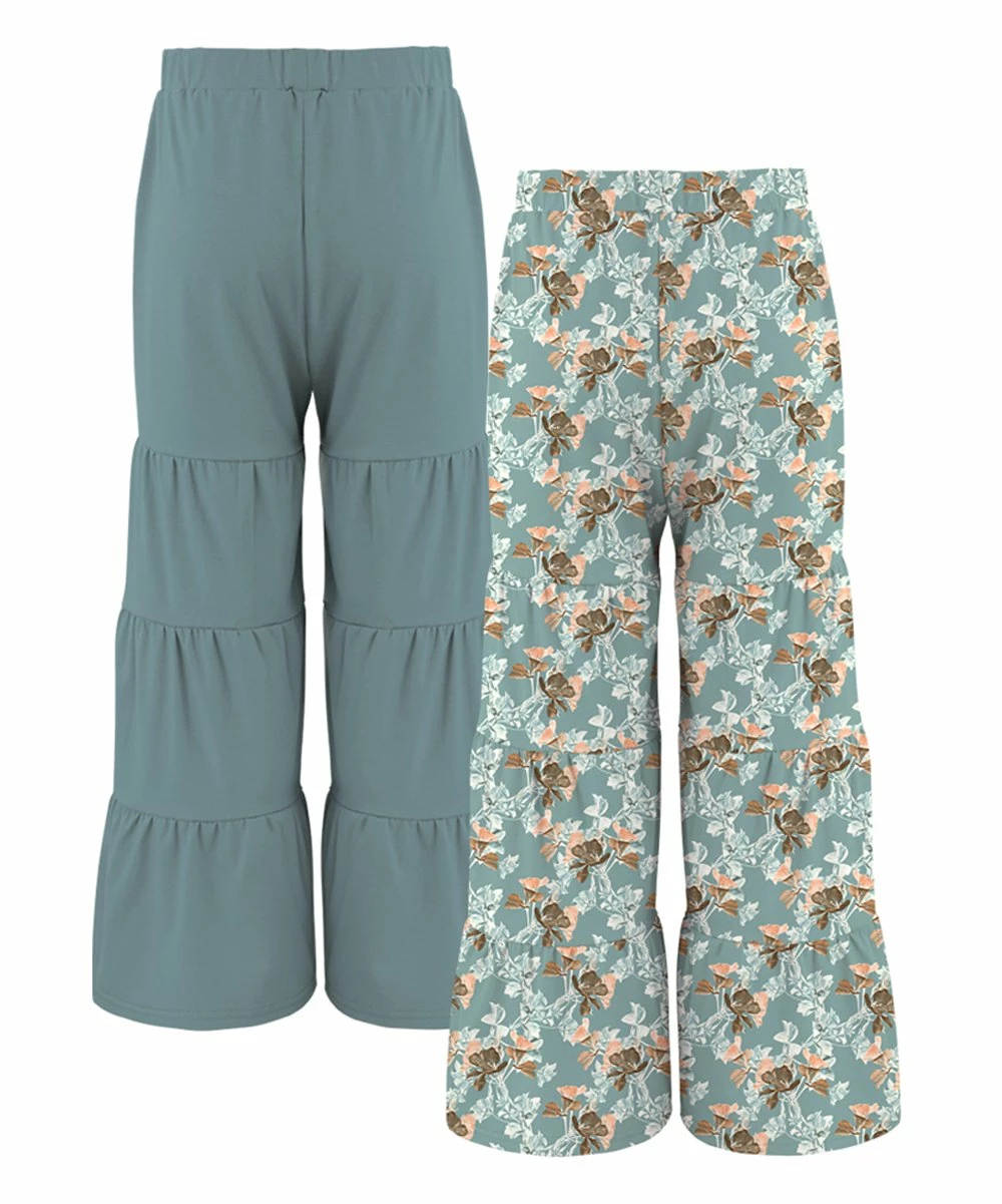 - Includes a pair of dusty turquoise and peach floral tiered pants (two pieces total)