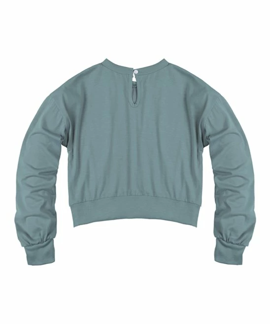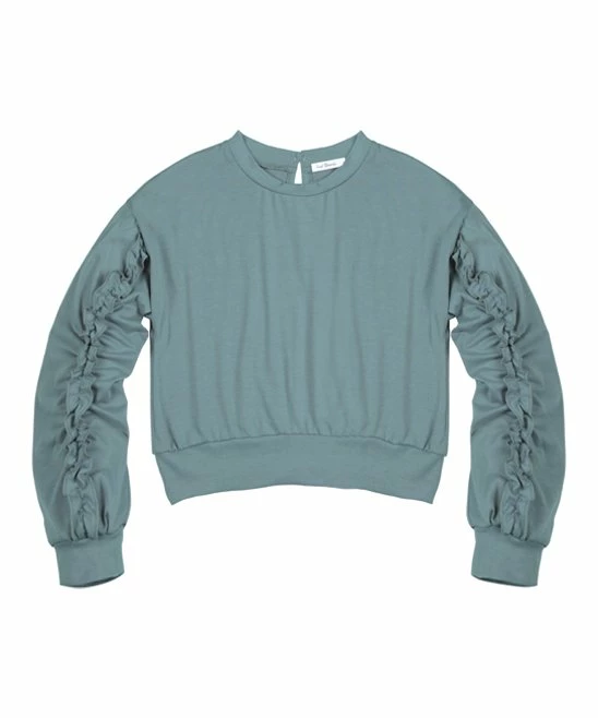 Ruffle detail adds a fun flourish to the long sleeves of this stretch-enhanced top.
