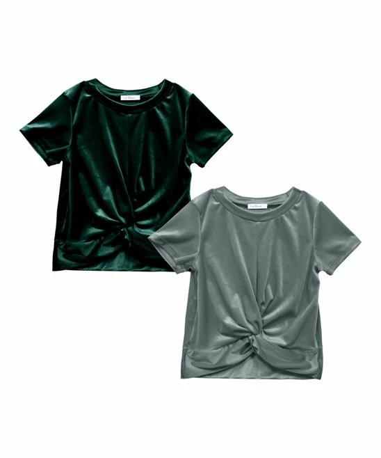 This set of short-sleeve tops feature a velvety fabric and knot-front hem.