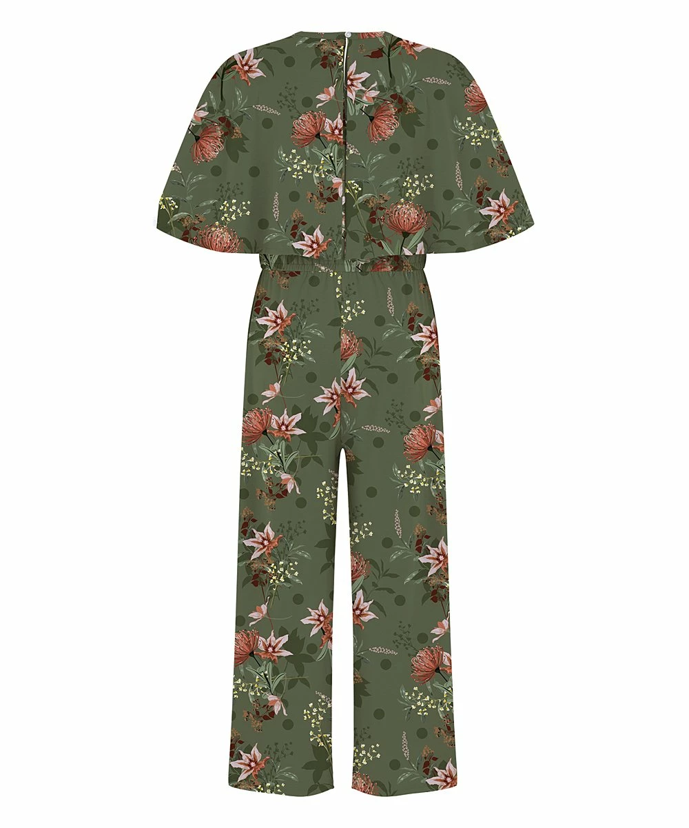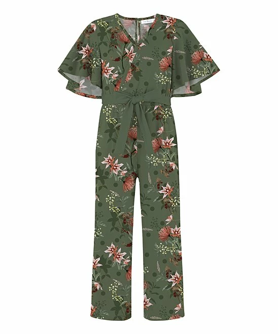 This floral flutter-sleeve jumpsuit is designed with a flattering bow belt and v-neckline.