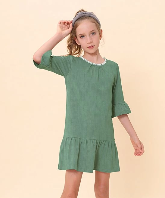 Deals ๐ŸŽ Trend Blossoms Light Green Crinkle Bell-Sleeve Ruffle-Hem Shift ๐Ÿ‘— Dress – ๐Ÿ‘ง Girls ๐ŸŽ‰