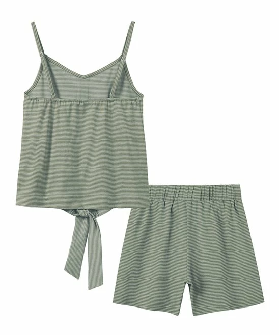 - Includes light green tank and shorts (two pieces total)