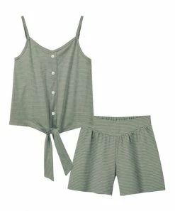 Fun in the sun awaits when they wear this button-front, tie-waist tank and paired shorts.