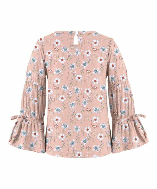 Deals 😀 Trend Blossoms Dusty Blue Ruffle Long-Sleeve Top & Ombré Bow-Accent Maxi 👗 Skirt – 👧 Girls 💯