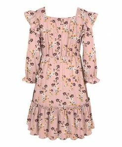 Spruce up their dress collection with this ruffle-accented dress crafted with a hint of stretch for added comfort.