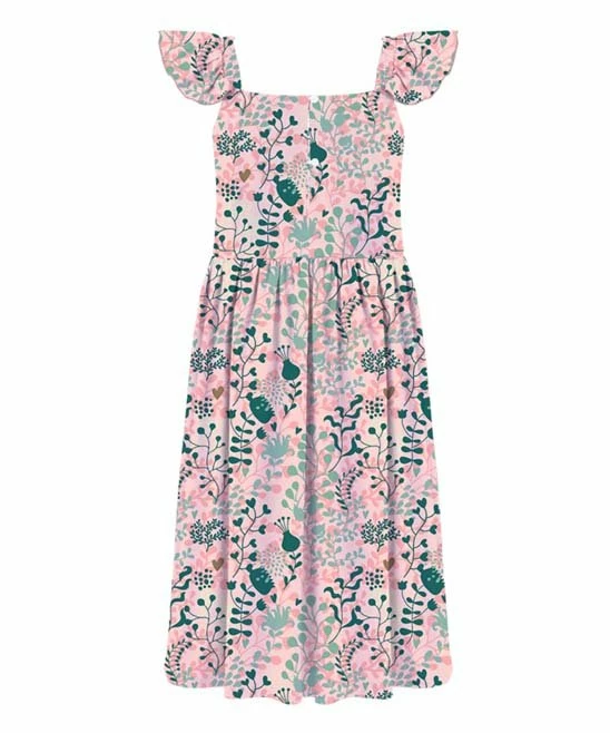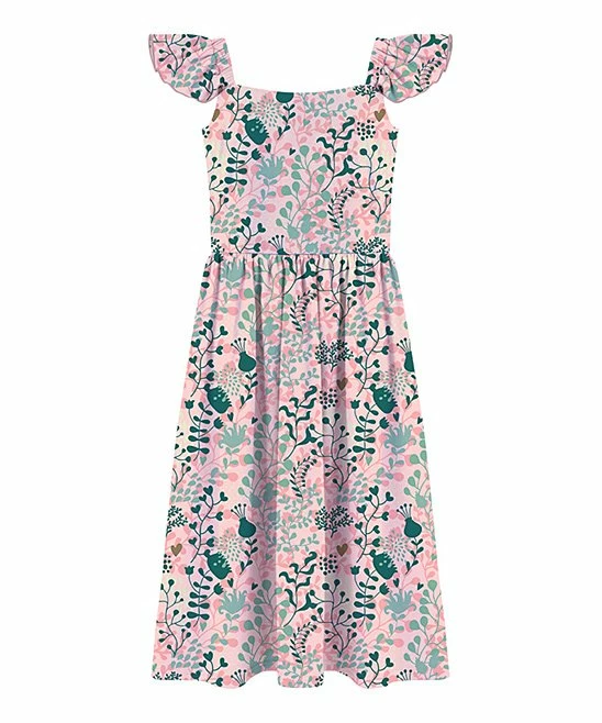 Maximize their wardrobe’s style potential with this full-length dress featuring a ruffled angel sleeves and comfortably stretchy fabric.