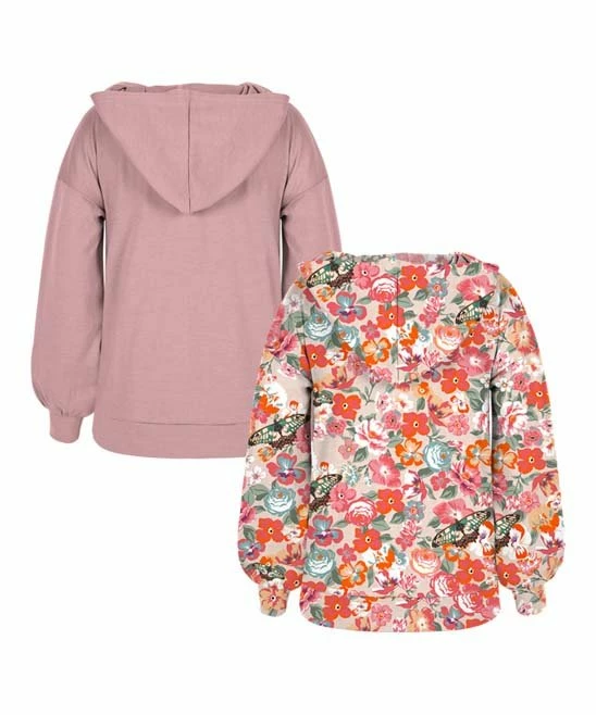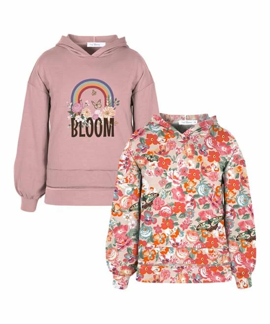 - Includes dusty pink graphic hoodie and orange floral hoodie (two pieces total)