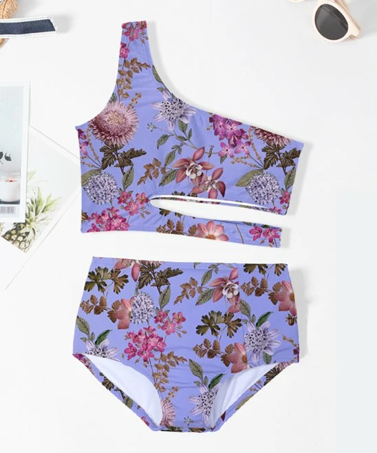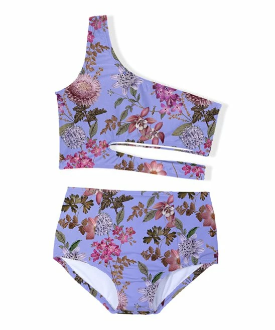 - Includes periwinkle floral top and matching bottoms (two pieces total)