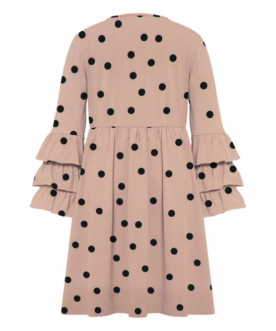 Designed with playful polka dots and layered ruffle sleeves, this A-line dress brings elevated style to your trendy tween’s collection of all-in-one ensembles. Stretch-infused fabric delivers the comfort they crave.
