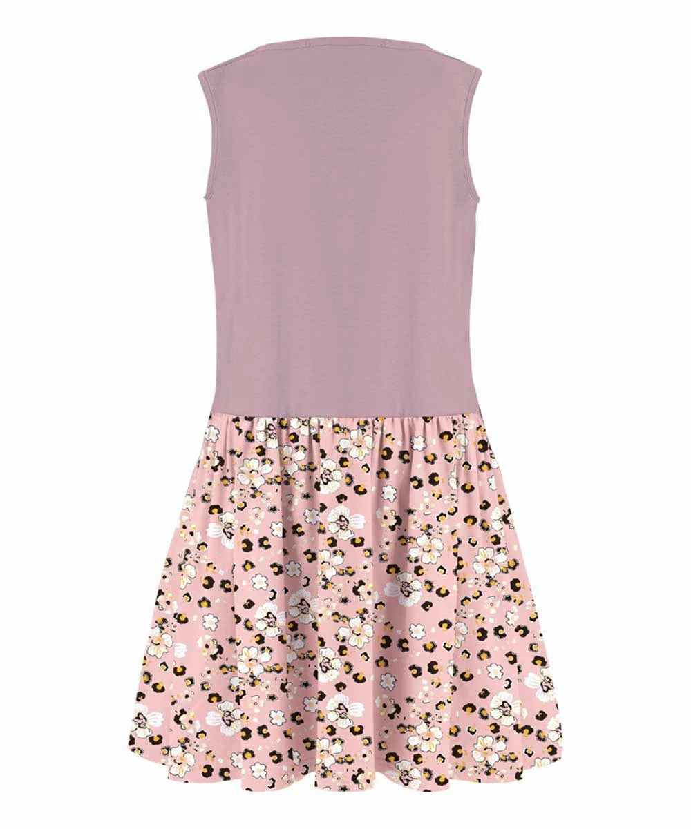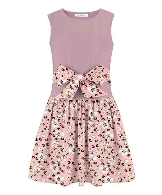 Revamp their wardrobe with the unique style of this sleeveless dress that features a floral print accented by a bow.