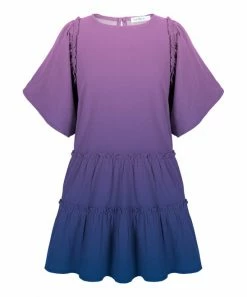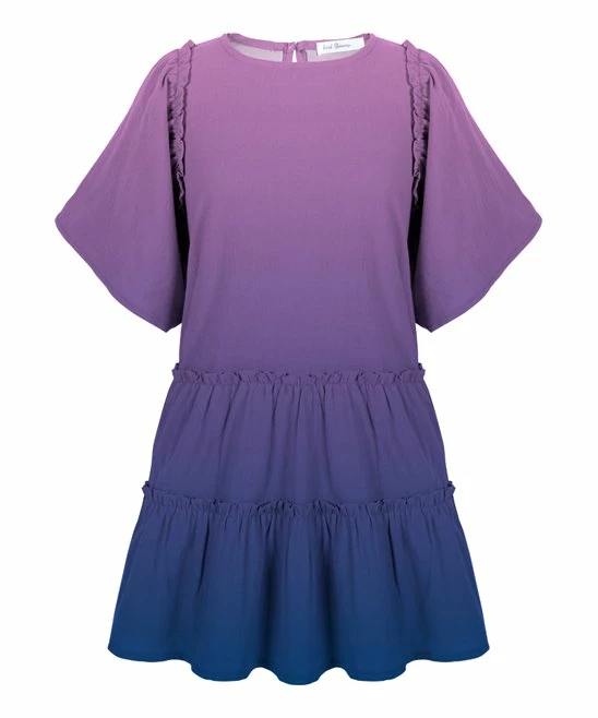 Cheap ⌛ Trend Blossoms Purple & Blue Ombré Bell-Sleeve A-Line 👗 Dress – 👧 Girls ❤️
