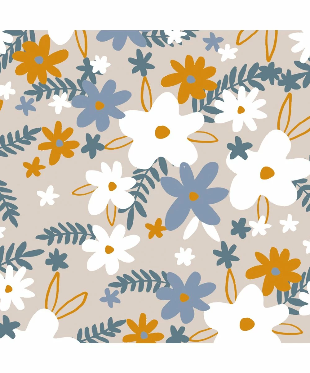 - Includes one white floral knot-front top and one pair of beige floral flare pants (two pieces total)