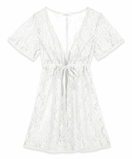 Lacy fabric makes this cover-up ever-so pretty, and the drawstring waist delivers a comfy fit while they lounge by the pool or on the sand.