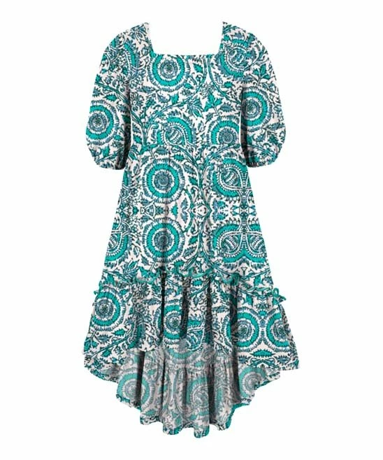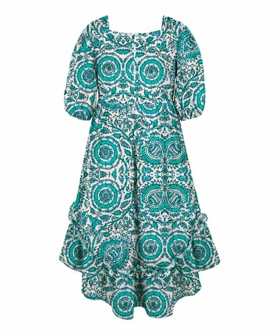 Bring an enchanting touch to her wardrobe with this flowy dress that features puff sleeves and a charming hi-low hem.